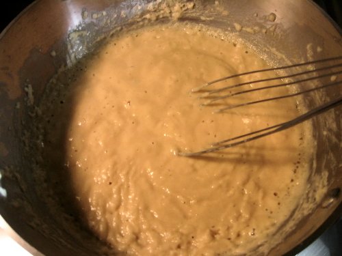 brown roux, the flour may be browned in an oven before adding it to the fat. A heavily